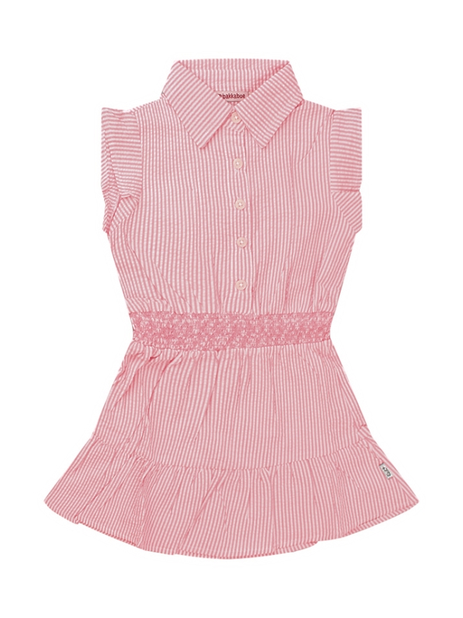Dit schattige jurkje voor babymeisjes heeft een vrolijk streepjespatroon en is voorzien van kapmouwtjes. Het smockwerk in de taille zorgt voor een mooie pasvorm, terwijl het zachte materiaal het perfect maakt voor elke gelegenheid.