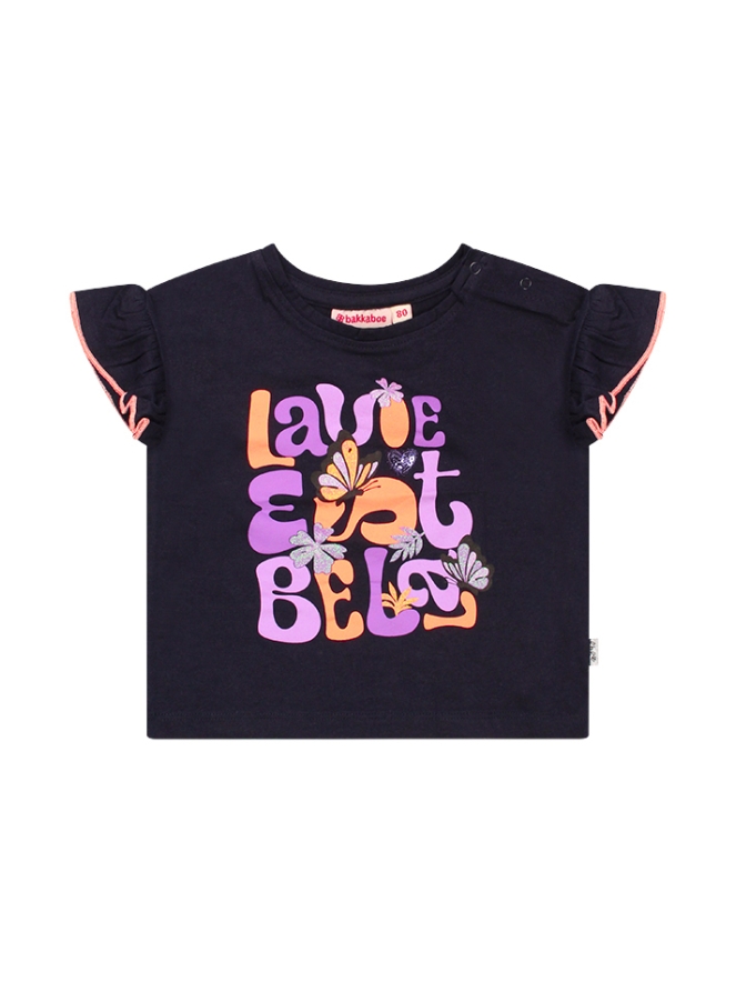 Lavie est belle! Dit vrolijke T-shirt heeft een ruchemouw met contrasterend randje en natuurlijk het leven is mooi. Dus geniet en laat haar dit mooie shirtje dragen en ze zal stralen.
