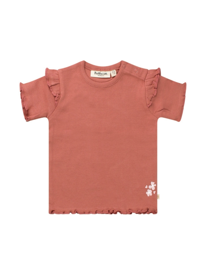 Dit schattige newborn meisjesshirt is perfect voor je kleintje! Gemaakt van zachte bio-katoen/lycra ribstof voor optimaal comfort en stretch. De schattige ruches en lieve bloemetjes- en hartjesprint maken het extra bijzonder. Combineer met het bijpassende broekje of andere items uit de newborn collectie!