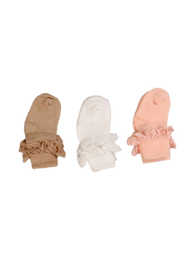 3 Paar newborn baby meisjes sokken met broderie ruche om de schacht. Leuk om te geven, verpakt in een mooie giftbox.