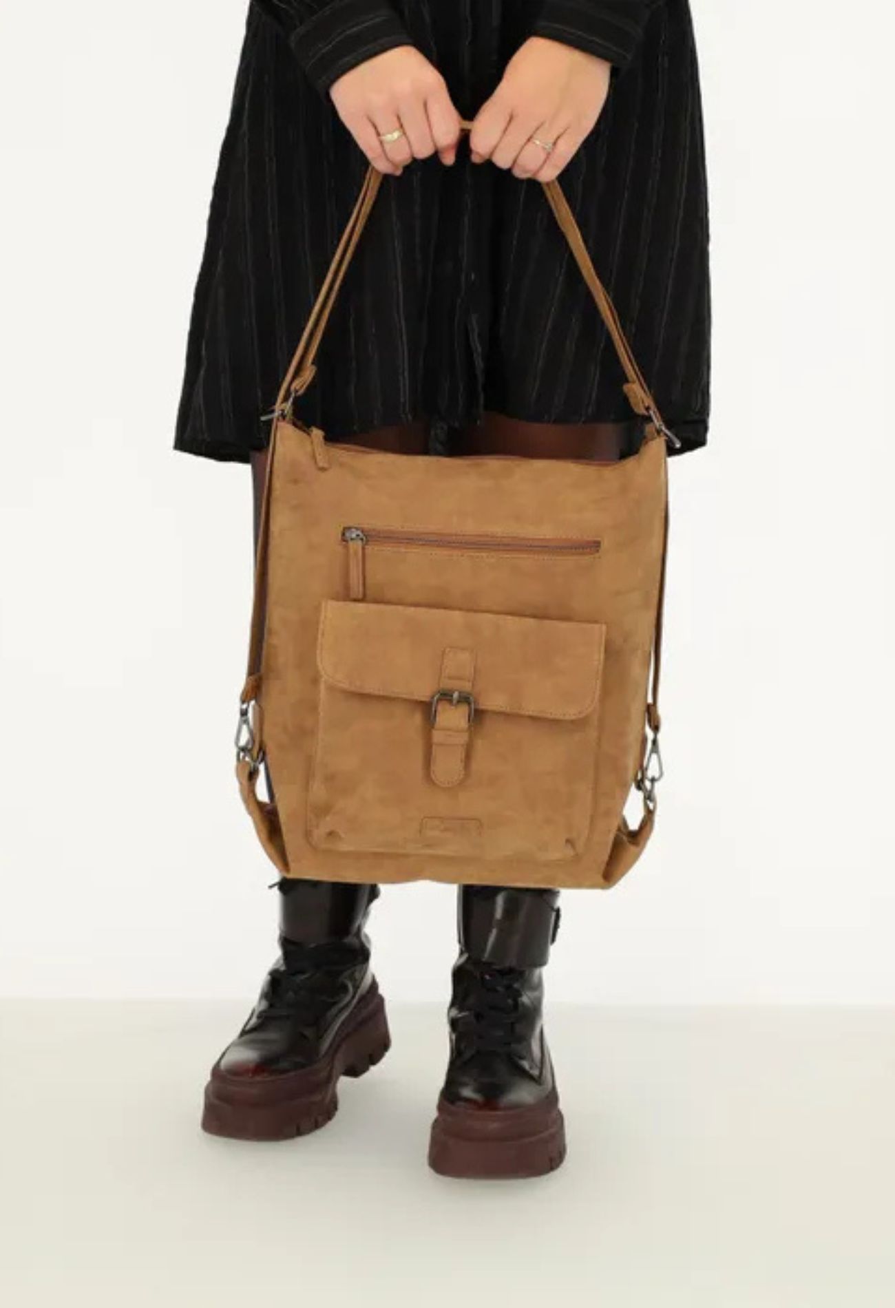 Deze tas van BEAGLES kan zowel als shopper en rugzak gebruikt worden. De tas heeft verschillende vakken welke afsluitbaar zijn met een rits. Het voorste vak sluit met een magneetsluiting. Afmeting: Lengte 38 cm. Breedte 14 cm. Hoogte 40 cm.
