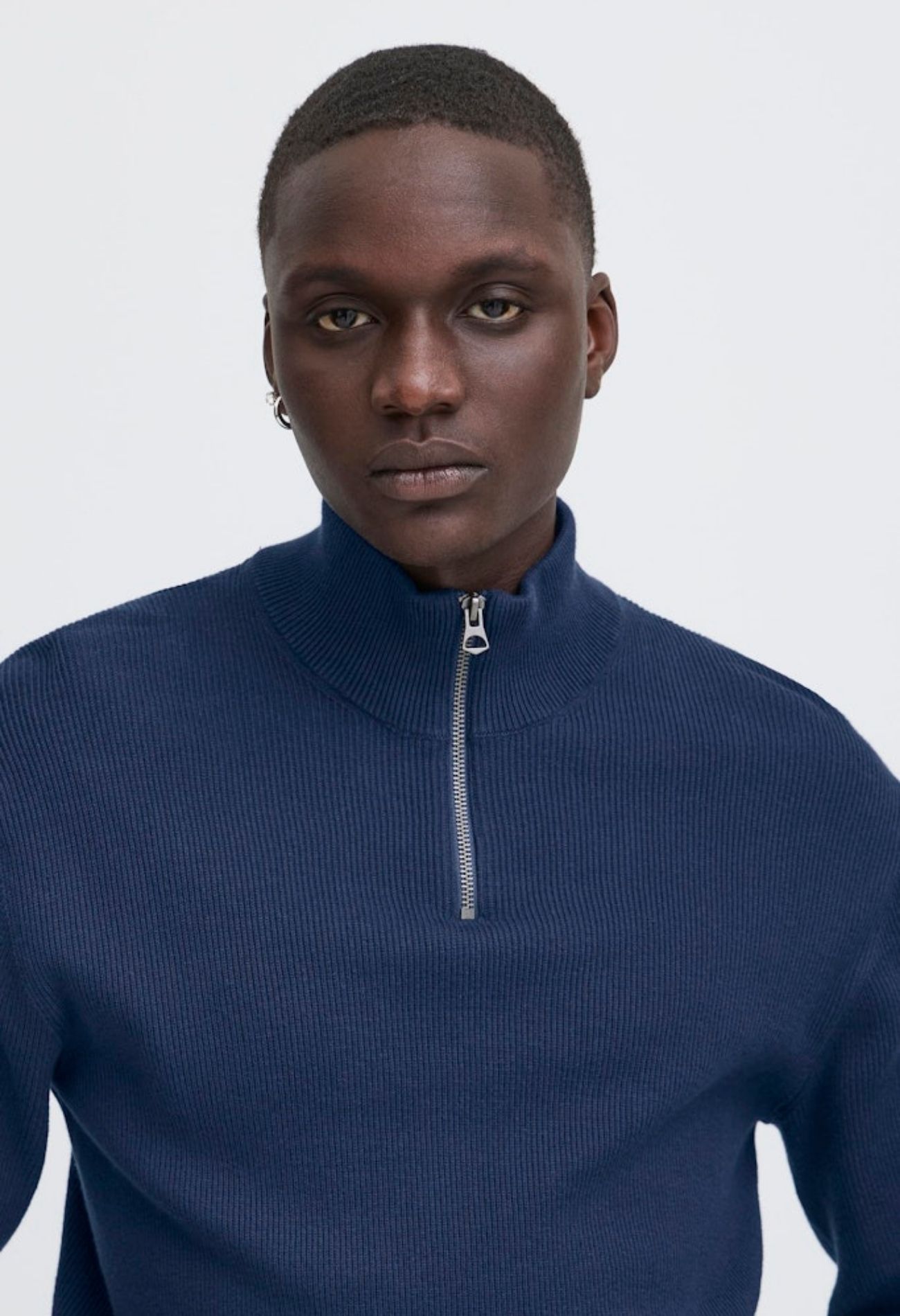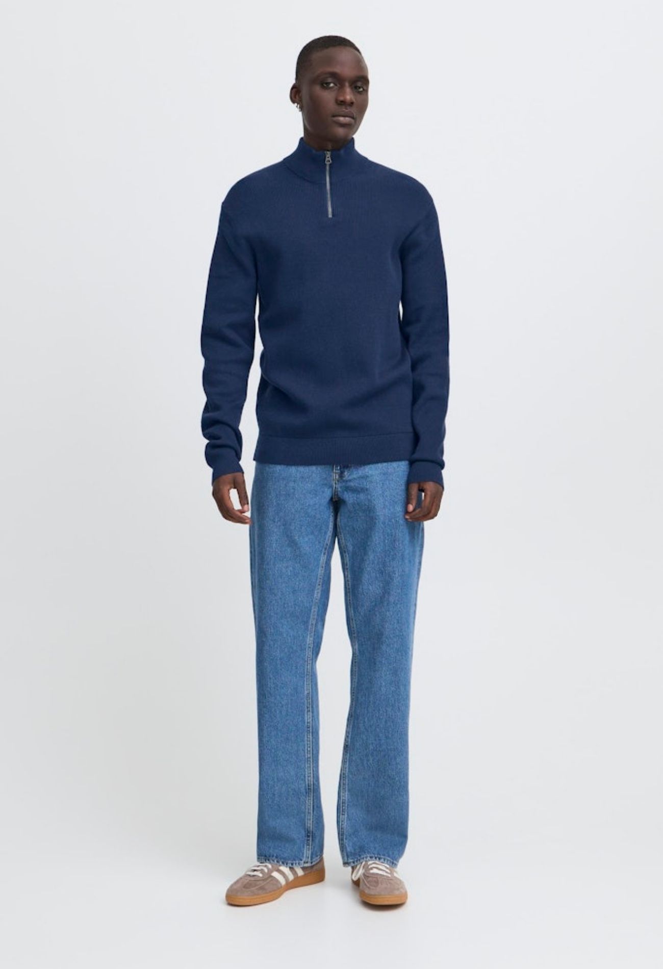Fijn gebreide pullover met een korte rits. Met fijne hoogsluitende hals.