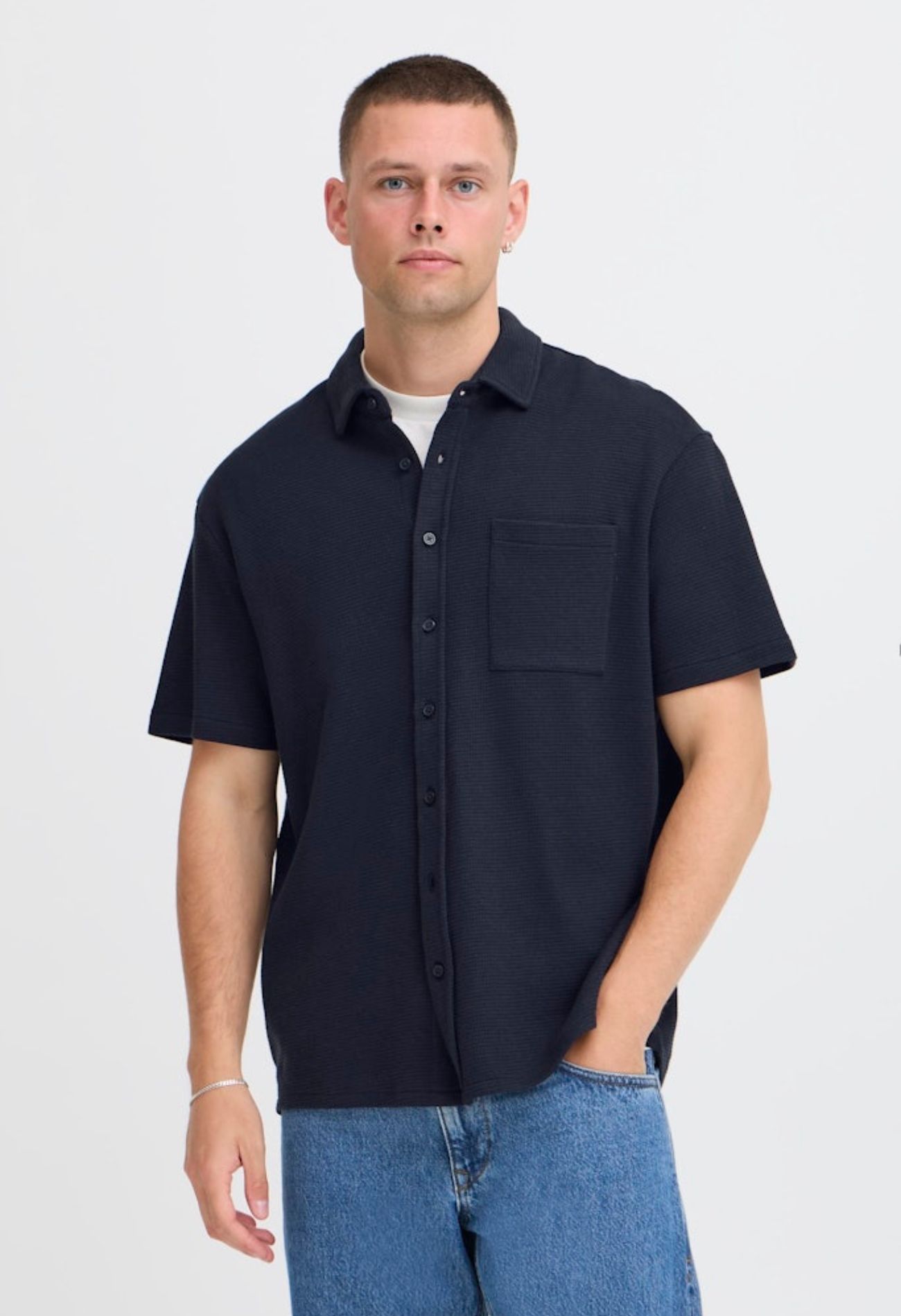 Dit herenoverhemd met korte mouwen is een perfecte combinatie van stijl en comfort. Gemaakt van 100% katoen, voelt de stof zacht aan op de huid en laat de huid ademen, ideaal voor warme dagen. De iets dikkere stof geeft het overhemd een hoogwaardige uitstraling. Dankzij het tijdloze ontwerp is dit overhemd geschikt voor zowel casual als semi-formele gelegenheden. Draag het los voor een ontspannen look of combineer het met een nette broek voor een verzorgde outfit.