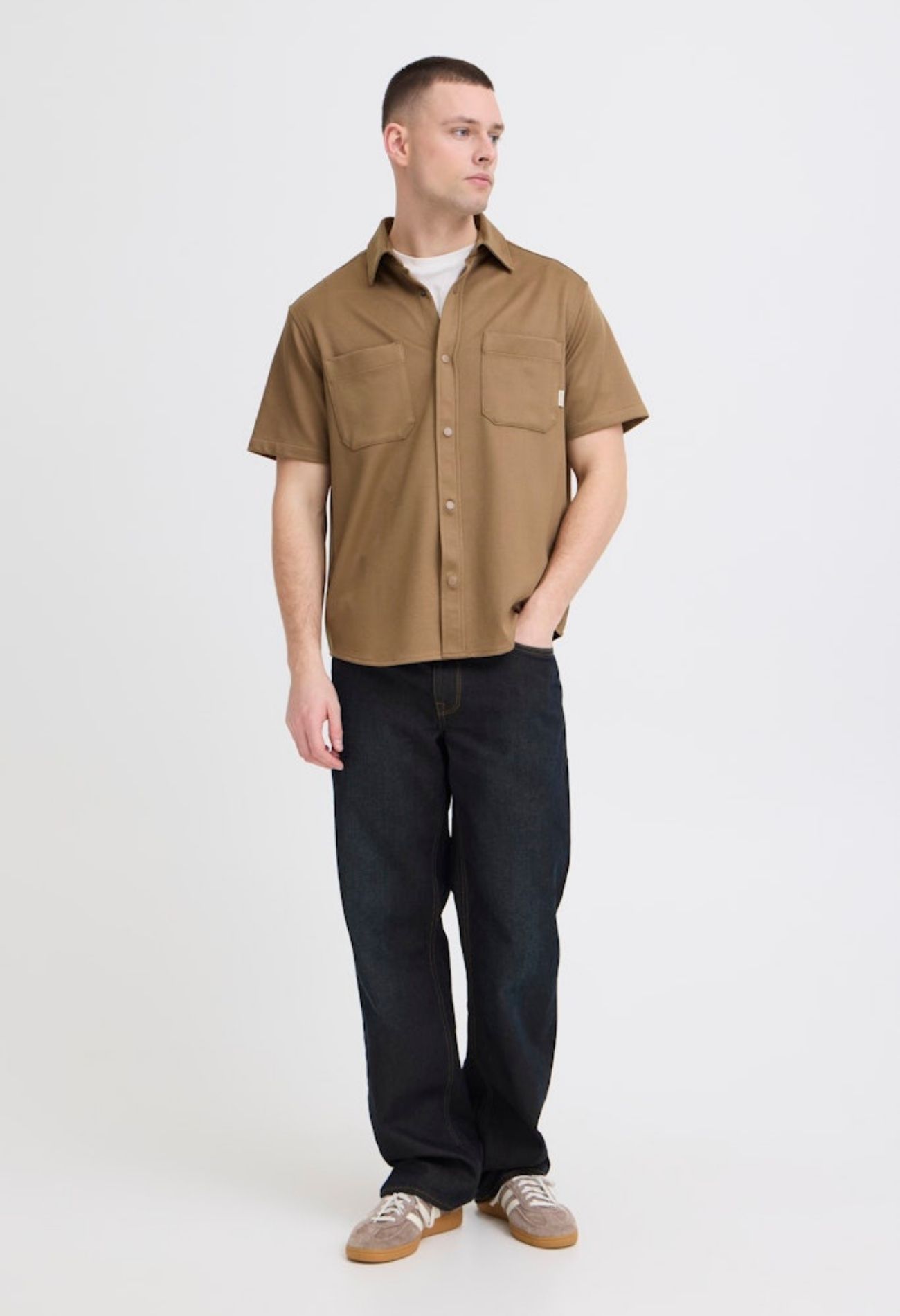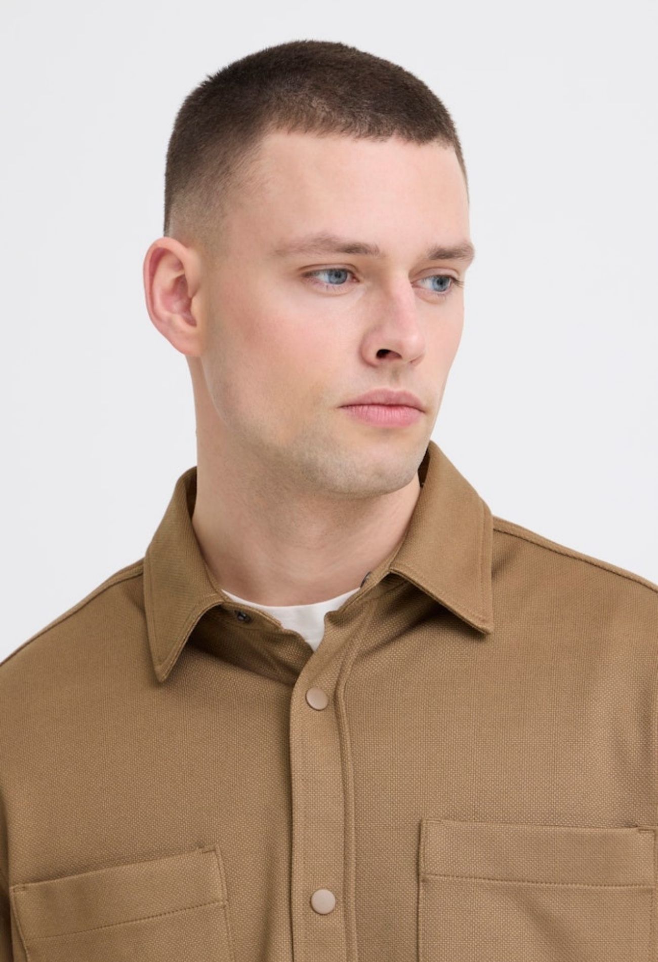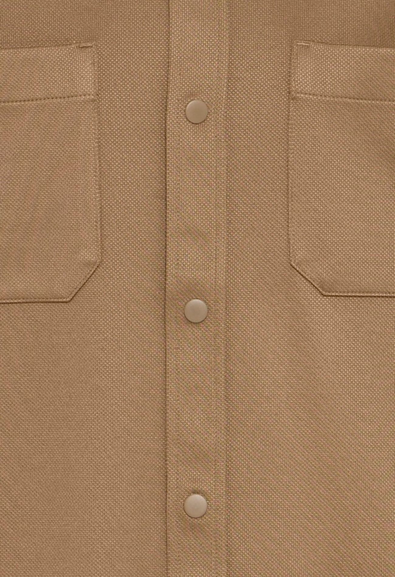Deze stijlvolle shacket in een warme cognac kleur is de perfecte mix tussen een overhemd en een jasje. Dankzij de korte mouwen is dit item ideaal voor het tussenseizoen of zomerse dagen waarop je nét iets extraâ??s wilt dragen. De shacket is voorzien van stevige drukknopen, wat zorgt voor een stoere en moderne uitstraling én extra draaggemak. Draag â??m open over een T-shirt voor een casual look, of gesloten als statement piece.