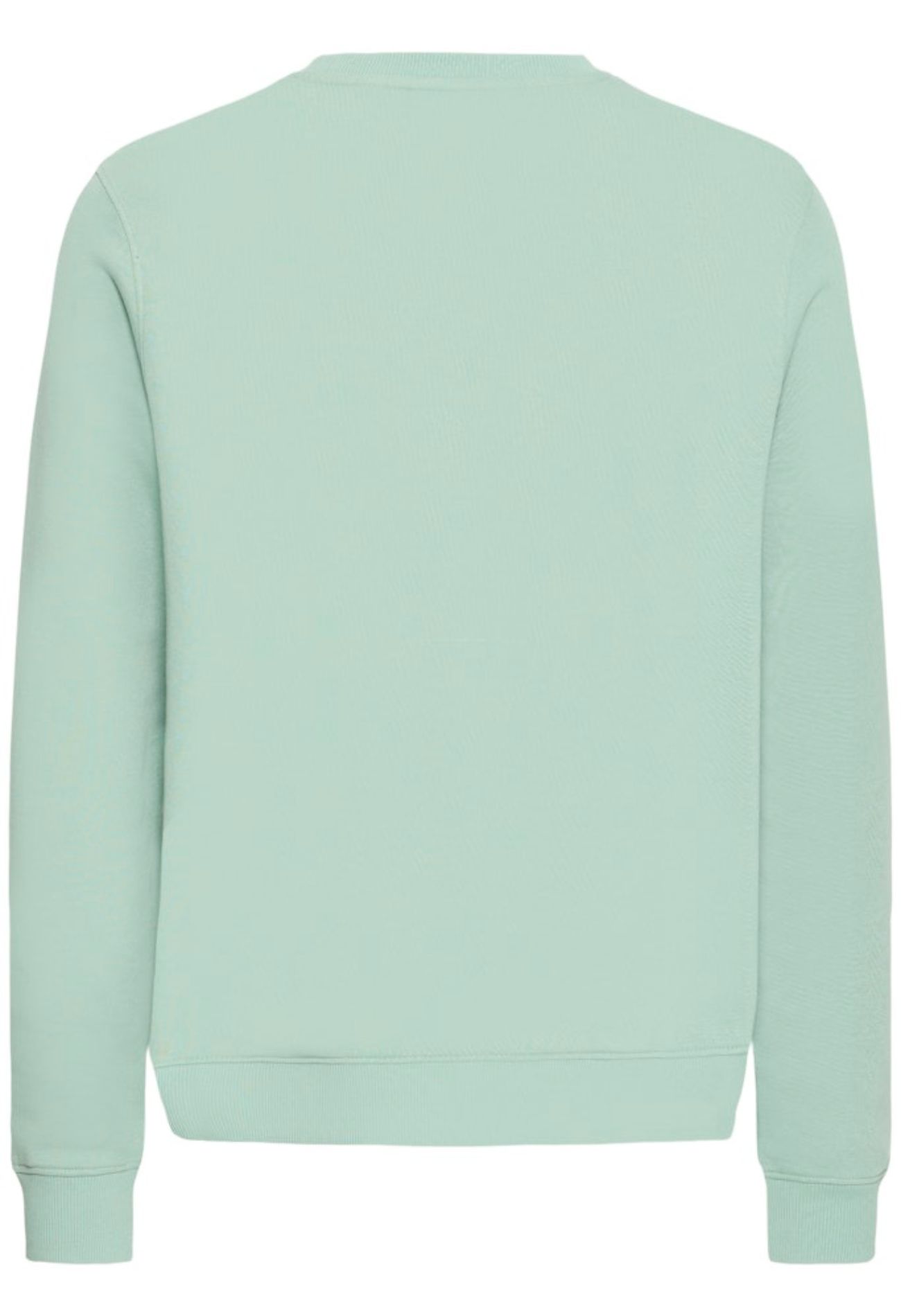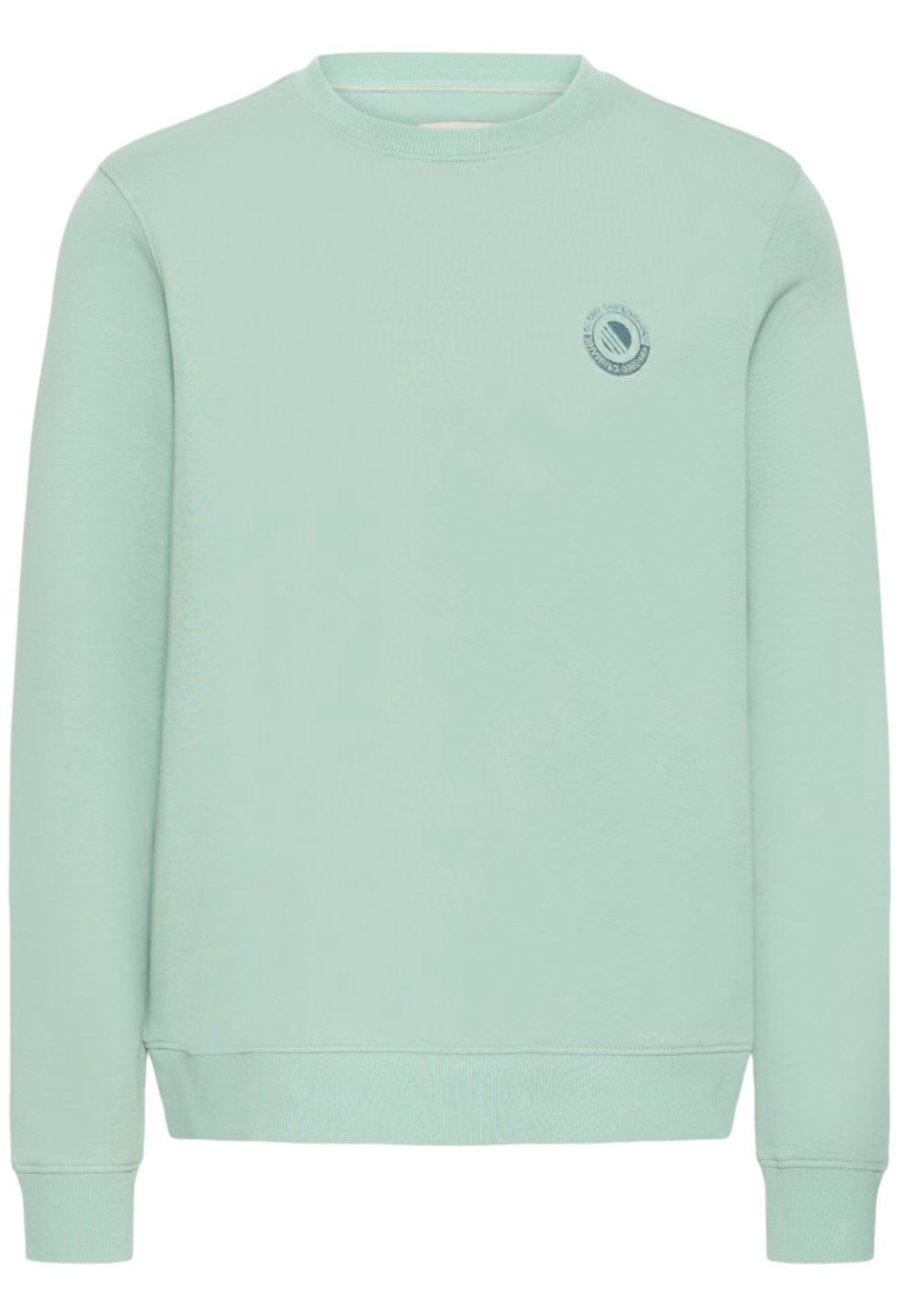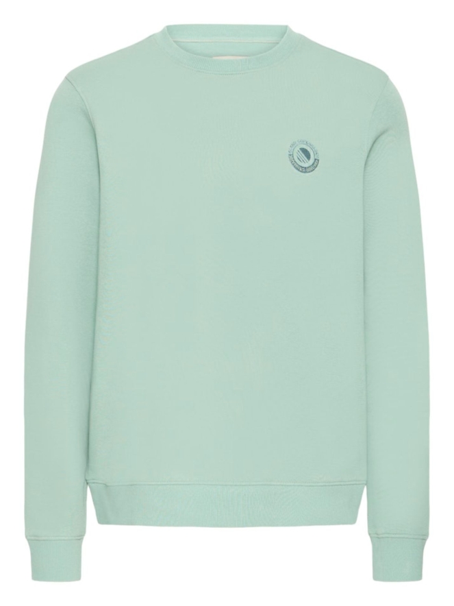 Basic sweater in een fris groene kleur en niet blauw zoals de kleur aanduiding in de omschrijving doet vermoeden. Met kleine borduring voorop. Verder geen poespas.