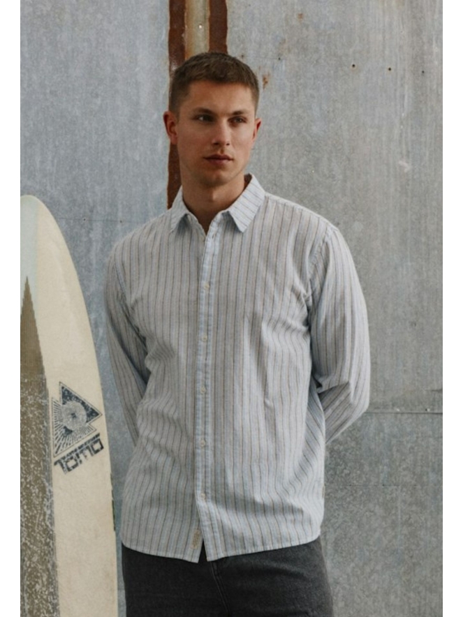 Dit gestreepte overhemd in lichte tinten is een tijdloze toevoeging aan elke garderobe. Het rechte model zorgt voor een comfortabele en moderne pasvorm, waardoor het zowel casual als netjes gedragen kan worden. De subtiele strepen geven het overhemd een frisse, verzorgde uitstraling, perfect voor zowel werk als vrije tijd.