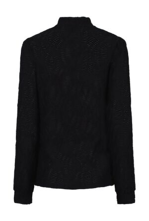 Top met turtleneck en pofmouwen met een lange manchet. Dit shirt heeft een structuur in de shop wat hem net even anders maakt. Leuk te combineren met een gilet of blazer, op een nette pantalon maar kan ook prima op een rok of spijkerbroek. Tijdloze top voor een nette look.