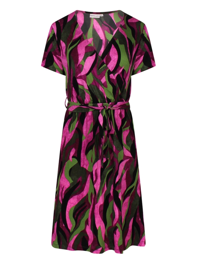 Dit leuke jurkje van Jersey katoen heeft een overslag in de top, korte mouwen en een bijpassende ceintuur in de middel. Met een mooie lengte van net boven de knie is dit jurkje uitermate geschikt voor vele gelegenheden.