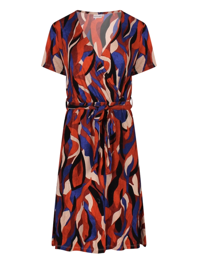 Dit leuke jurkje van Jersey katoen heeft een overslag in de top, korte mouwen en een bijpassende ceintuur in de middel. Met een mooie lengte van net boven de knie is dit jurkje uitermate geschikt voor vele gelegenheden.