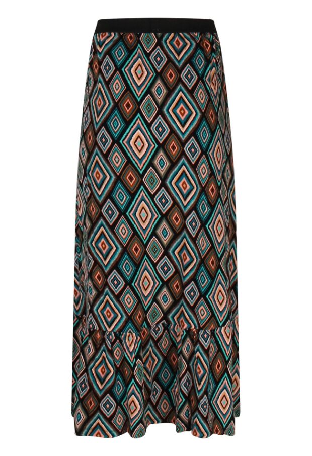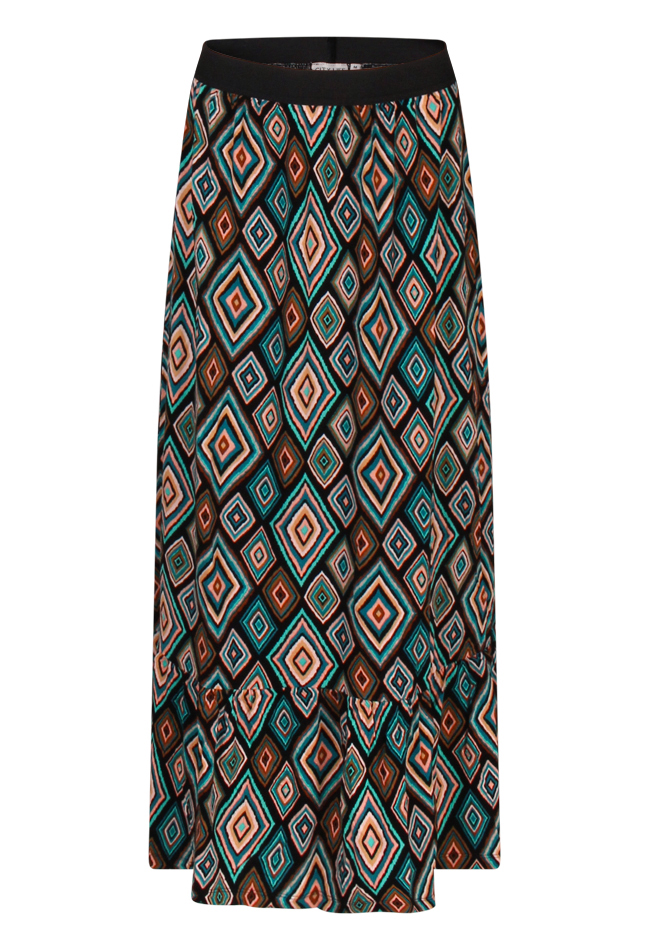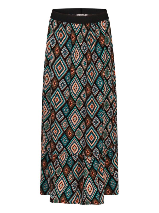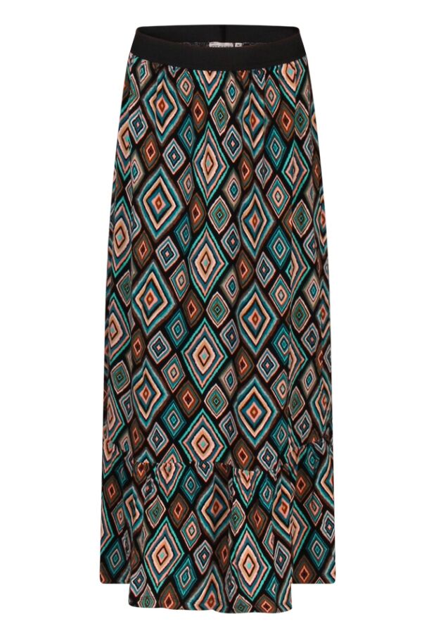 Heerlijke dunne rok van jersey katoen met stretch en een vrolijk wieberpatroon. Deze lange rok heeft een elastieken band voor in de taille en heeft een enkellengte. Leuk te combineren met T-shirts of singlets! Mix en match!