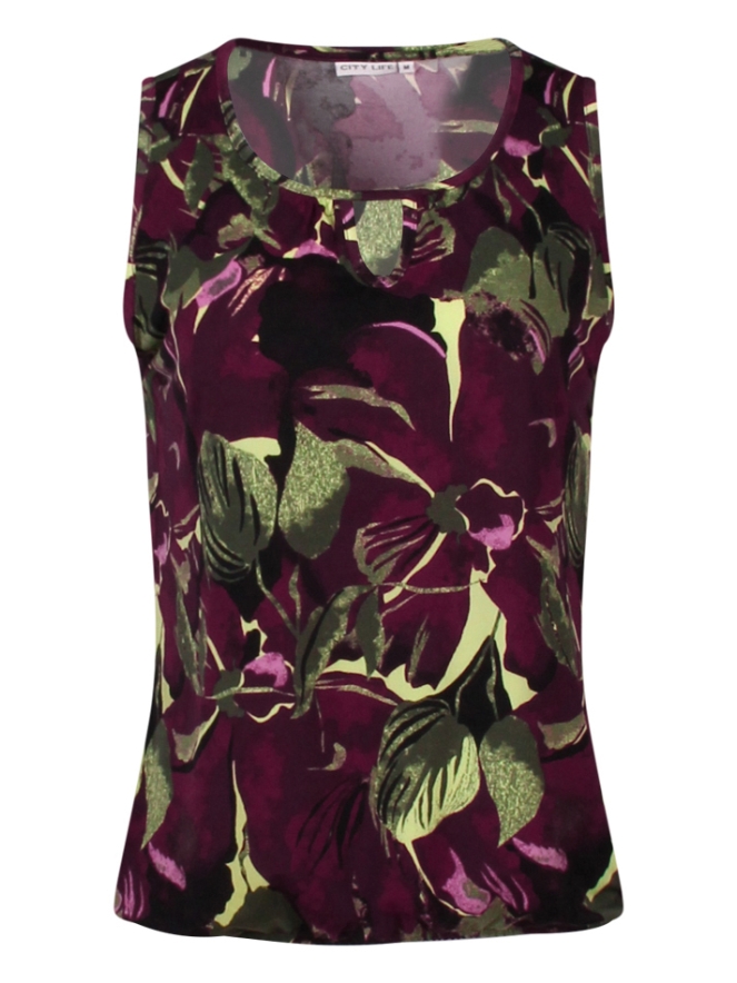 Deze singlet met druppeluitsparing aan de voorkant heeft een elastiek in de taille. Hiermee laat je het hemdje makkelijk bollen. Met fraai design in al weer de eerste najaarskleuren.