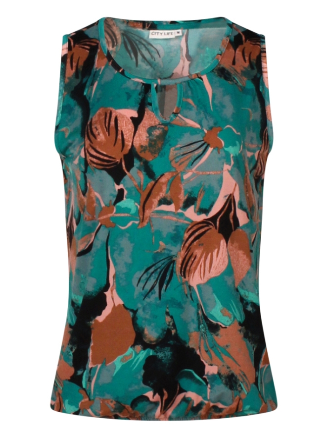 Deze singlet met druppeluitsparing aan de voorkant heeft een elastiek in de taille. Hiermee laat je het hemdje makkelijk bollen. Met fraai design in al weer de eerste najaarskleuren.