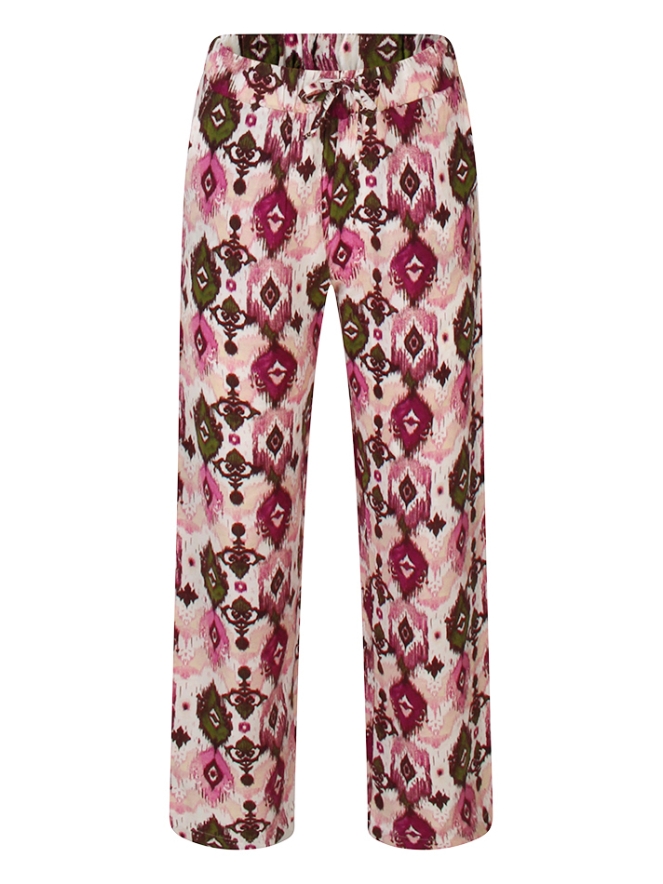 Warme dagen maar geen zin in een rokje of korte broek? Dan is deze luchtige dunne lange broek een aanrader! Met vrolijke aquarel ikat print en heerlijke steekzakken. Eenvoudig te combineren met singlets en T-shirtjes, zo loop jij er hip en trendy bij!