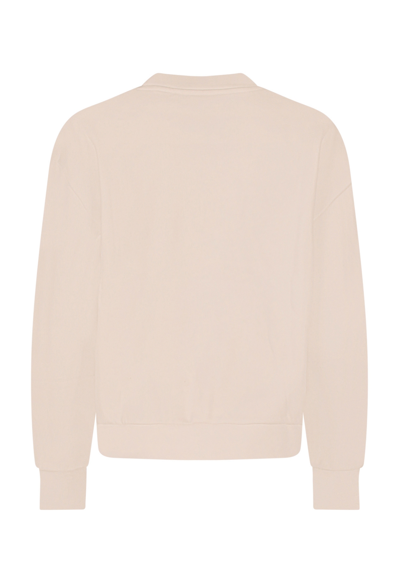 Deze dames sweat is een echte eyecatcher die moeiteloos comfort en stijl combineert. Het opgestikte lint op het voorpand zorgt voor een vrouwelijke en speelse twist, terwijl de parelstuds een subtiele, chique glans toevoegen. Zo krijgt een basic sweat meteen een luxueuze uitstraling. Gemaakt van een zachte en comfortabele kwaliteit, voelt deze sweater heerlijk aan en is hij perfect voor dagelijks gebruik. Dankzij het moderne design draag je hem zowel casual op een jeans als wat gekleder op een rok of pantalon.