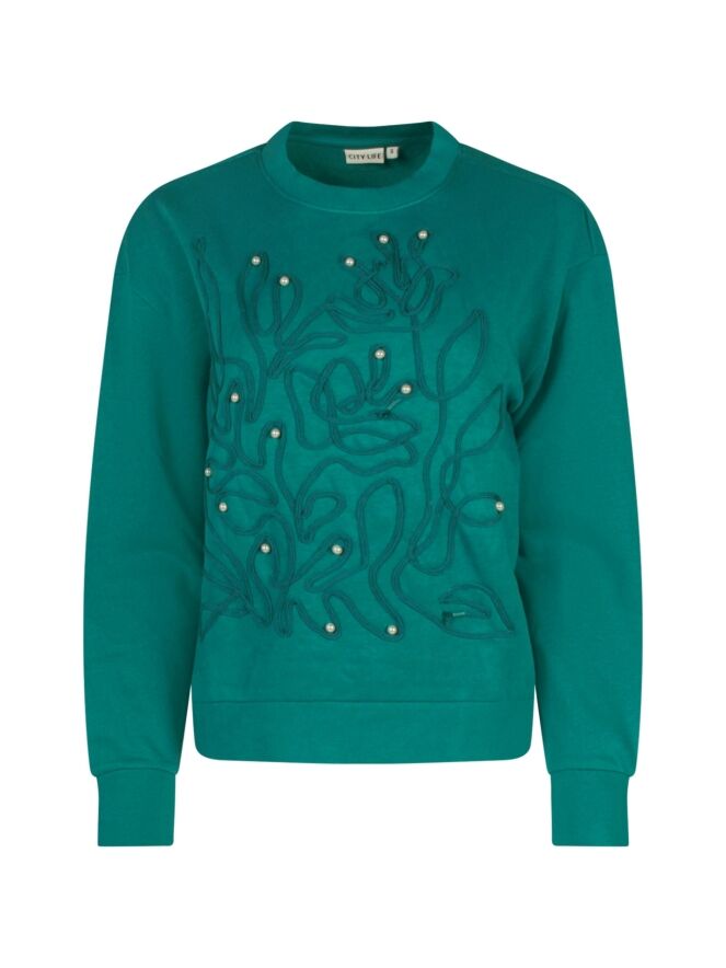 Deze dames sweat is een echte eyecatcher die moeiteloos comfort en stijl combineert. Het opgestikte lint op het voorpand zorgt voor een vrouwelijke en speelse twist, terwijl de parelstuds een subtiele, chique glans toevoegen. Zo krijgt een basic sweat meteen een luxueuze uitstraling. Gemaakt van een zachte en comfortabele kwaliteit, voelt deze sweater heerlijk aan en is hij perfect voor dagelijks gebruik. Dankzij het moderne design draag je hem zowel casual op een jeans als wat gekleder op een rok of pantalon.