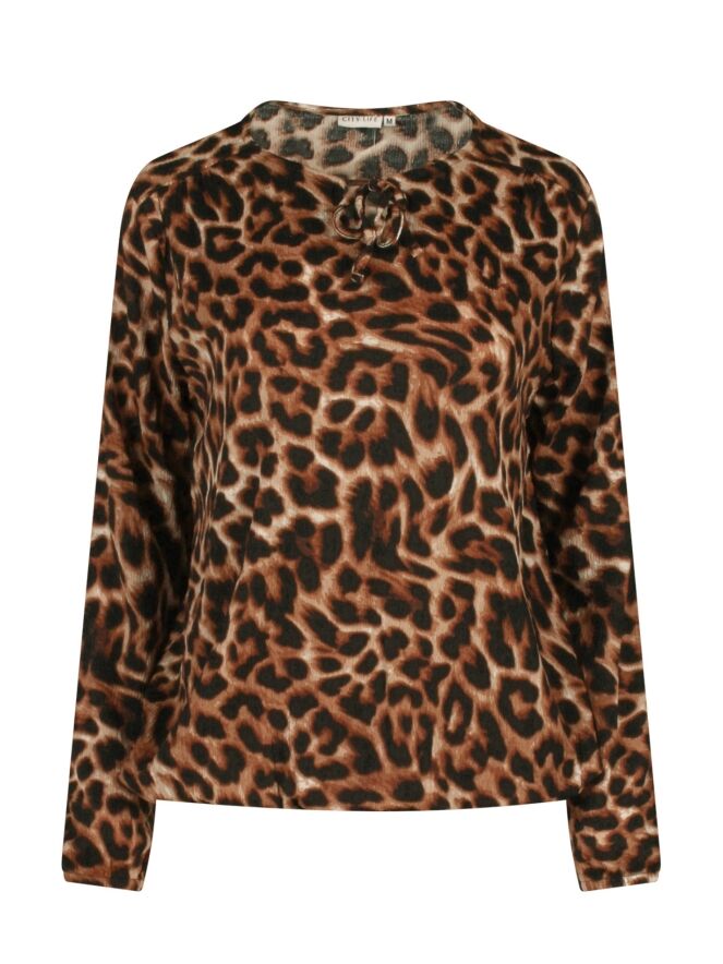 Deze kleurrijke top heeft een kleine inkeping voorop welke boven bij de hals sluit met een koordje. Hou je er van om je shirt een beetje te laten bollen? Goed nieuws! Dit shirt heeft zowel bij de pols als in de taille een elastiek. Makkelijk te combineren met rokken en jeans.