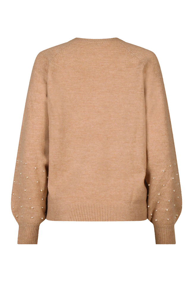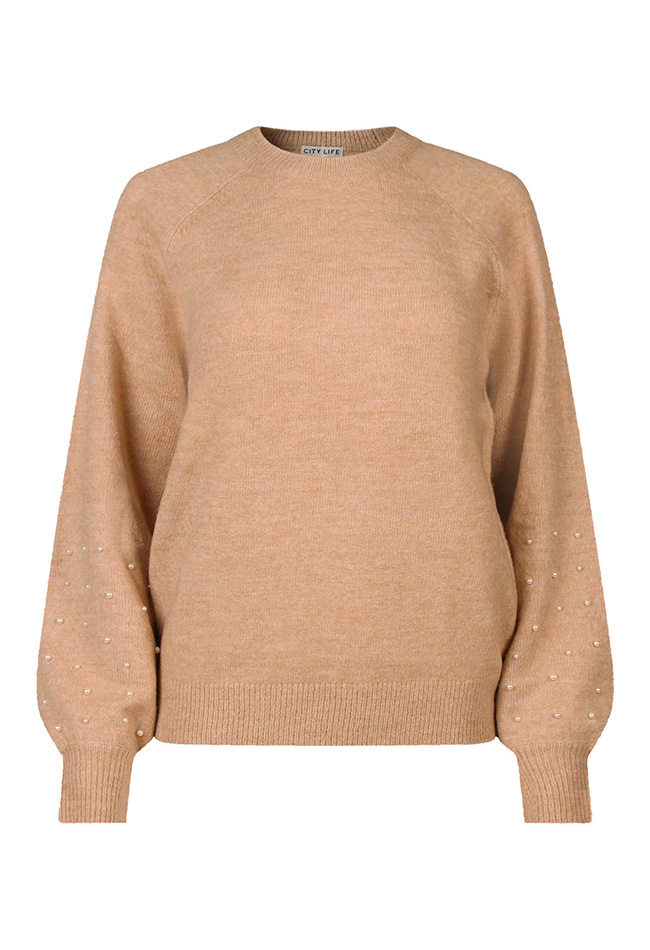 Heerlijke, zachte gebreide trui met trendy ballonmouwen die speels aflopen. Het fijne detail? Elegante parels aan het uiteinde van de mouwen die zorgen voor een subtiele, vrouwelijke touch. Perfect om te combineren met een jeans voor een stijlvolle, casual look met een beetje extra flair.