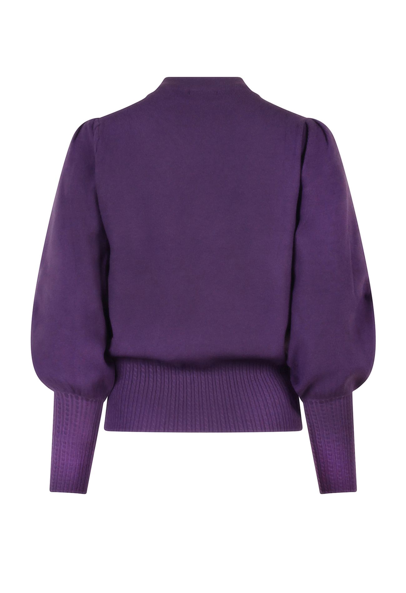 Heerlijke fijn gebreide trui met een kabelpatroon in de tailleboord en boord aan de mouwen. Met pofmouwen en een mooie turtleneck.