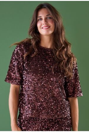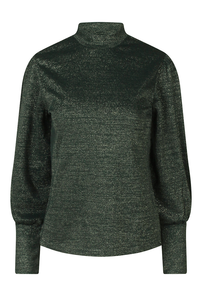 Deze dames top combineert een zachte polyestermix met een subtiele metallic glans, waardoor ?ie nét dat beetje extra heeft. De turtleneck en speelse pofmouwen geven de top een trendy, vrouwelijke uitstraling. Perfect om te dragen onder een blazer of gewoon op een jeans voor een chique, feestelijke look.