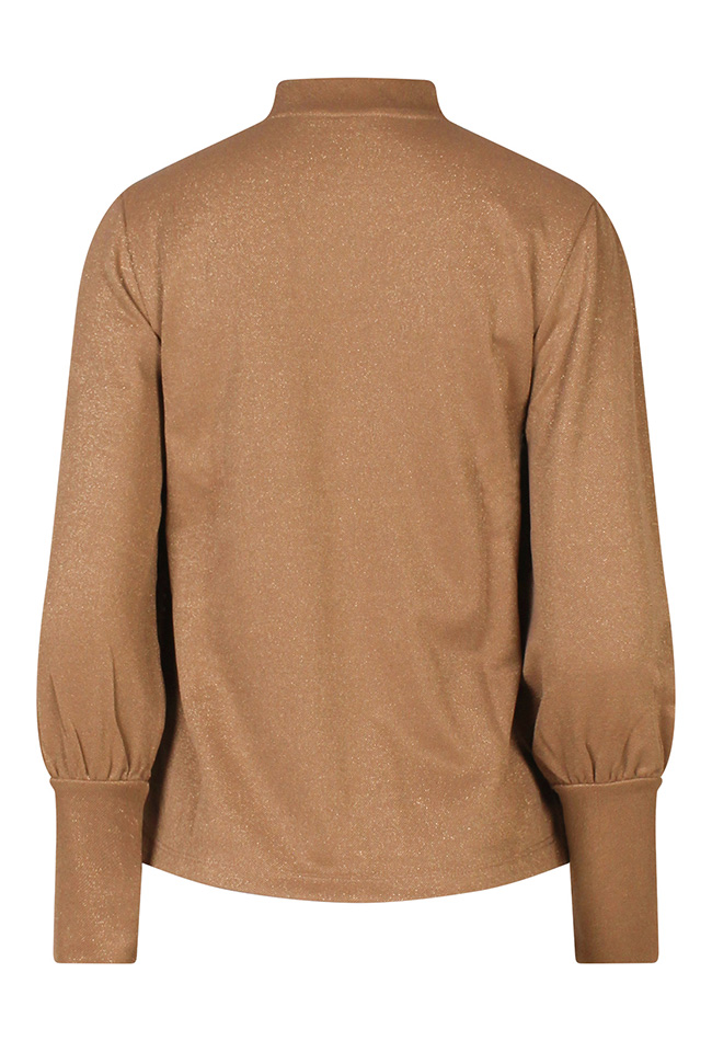 Deze dames top combineert een zachte polyestermix met een subtiele metallic glans, waardoor ?ie nét dat beetje extra heeft. De turtleneck en speelse pofmouwen geven de top een trendy, vrouwelijke uitstraling. Perfect om te dragen onder een blazer of gewoon op een jeans voor een chique, feestelijke look.