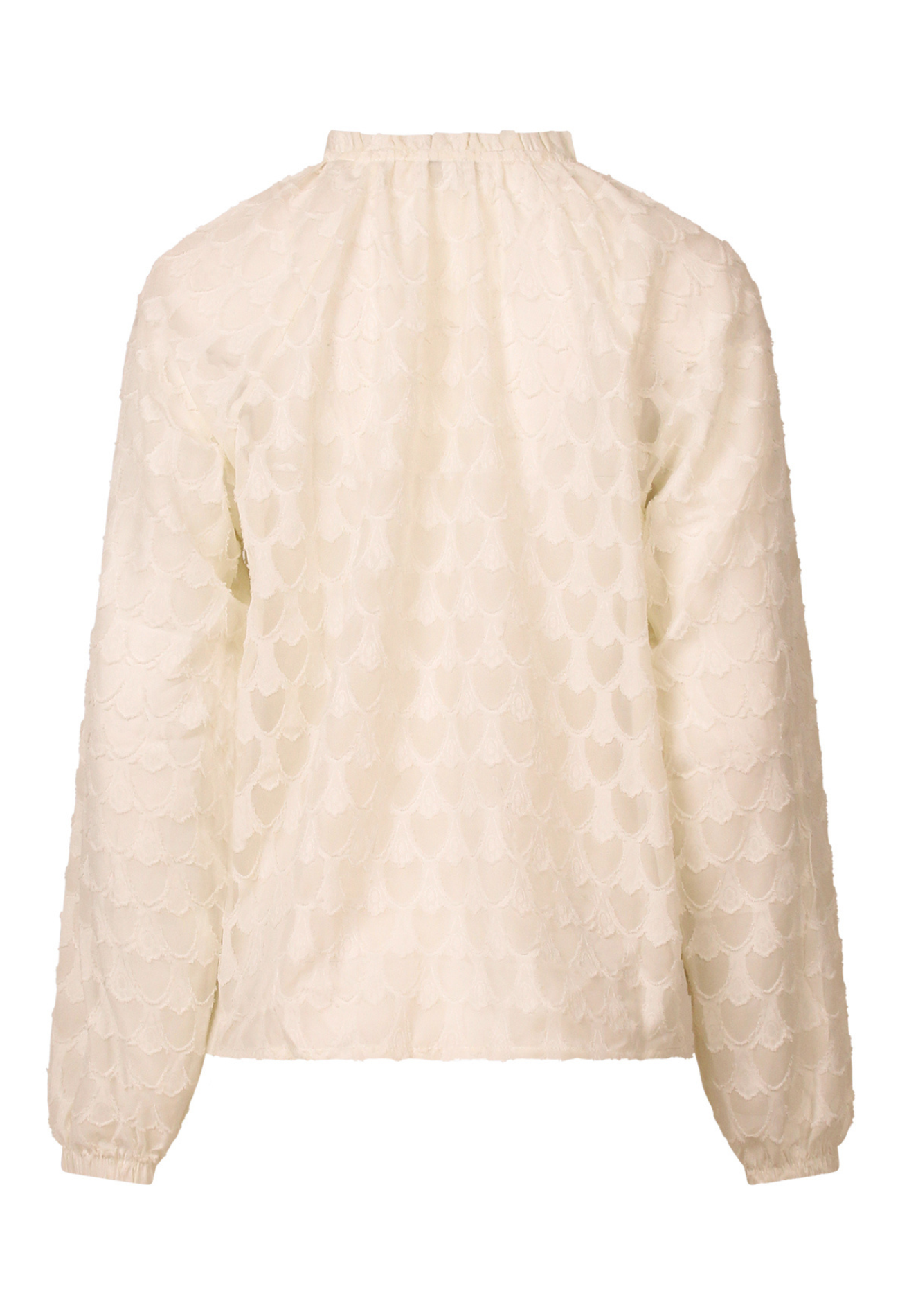 Deze luchtige damesblouse is helemaal on-trend met haar subtiele hartjesprint in de stof en speelse ruches aan de voorkant. De pofmouwen met elastiek in de zoom geven een vrouwelijke touch, terwijl de ruffel langs het voorpand zorgt voor extra flair. Combineer hem met een high-waisted jeans voor een casual chique look, of draag hem op een rok voor een romantische twist.