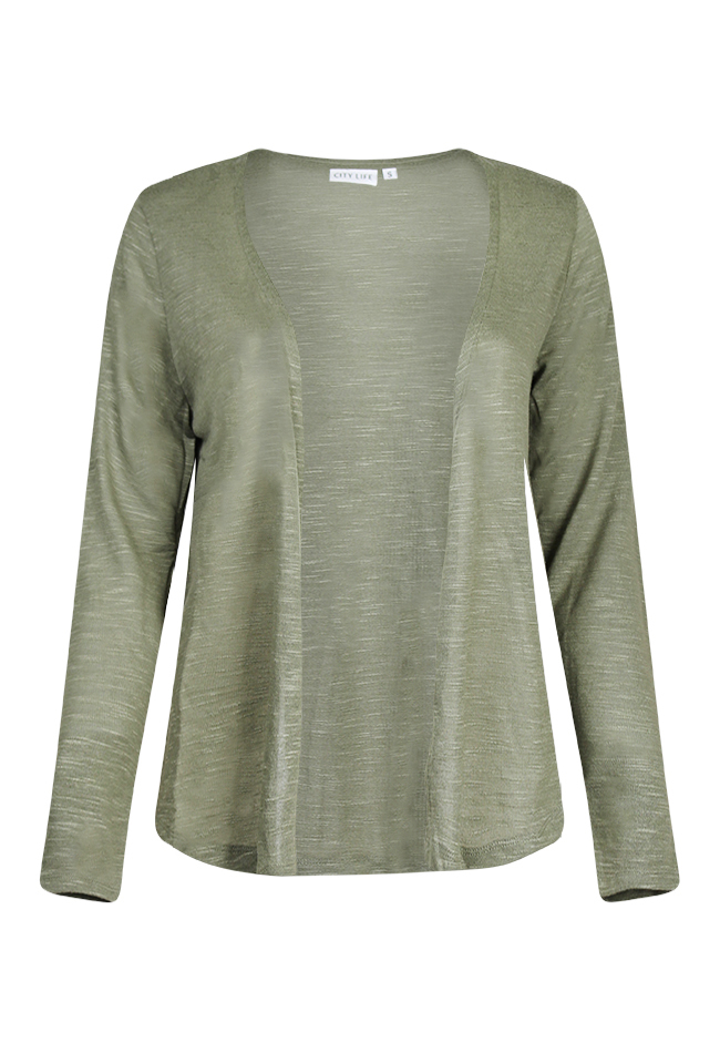 Vest van City Life. Dit vest is open vallend en een kort model met lange mouwen. Hij kan makkelijk over een shirt gedragen worden. Draagt fijn door de dunne luchtige stof.