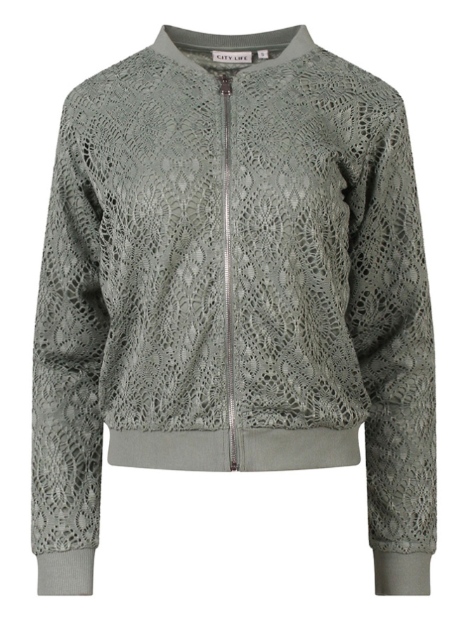 Prachtig stijlvol vestje met een bohemian inslag. Dit vest in een bombermodel heeft een ajour overstof en heeft daardoor een sjiecke klassieke uitstraling. Let op, in verband met de kwetsbaarheid van de stof uitsluitend wassen in een wasnetje met gesloten rits.