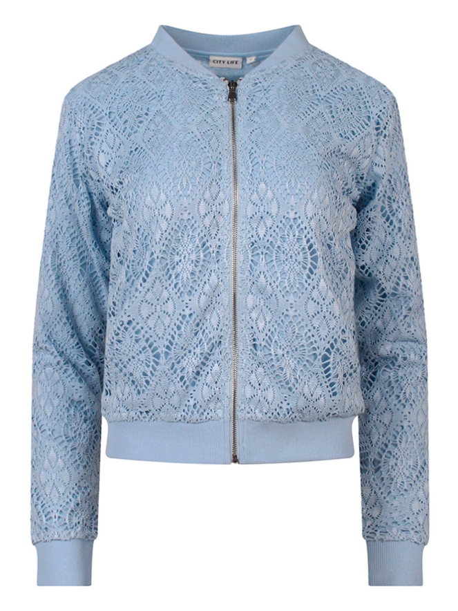 Prachtig stijlvol vestje met een bohemian inslag. Dit vest in een bombermodel heeft een ajour overstof en heeft daardoor een sjiecke klassieke uitstraling. Let op, in verband met de kwetsbaarheid van de stof uitsluitend wassen in een wasnetje met gesloten rits.
