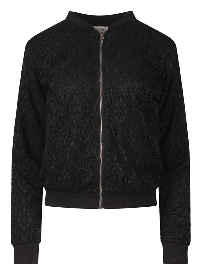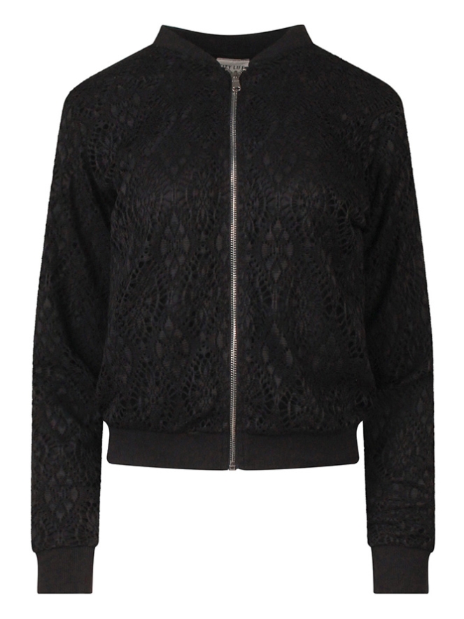 Prachtig stijlvol vestje met een bohemian inslag. Dit vest in een bombermodel heeft een ajour overstof en heeft daardoor een sjiecke klassieke uitstraling. Let op, in verband met de kwetsbaarheid van de stof uitsluitend wassen in een wasnetje met gesloten rits.