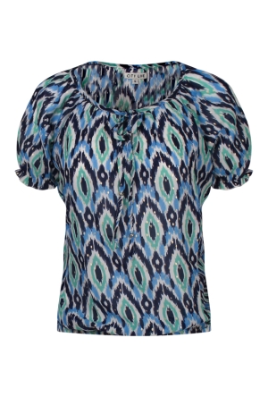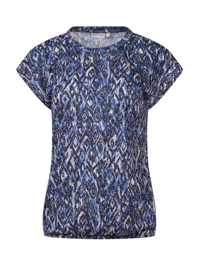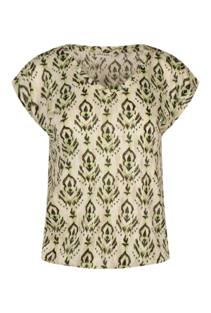 Dit casual T-shirt met korte mouwen combineert comfort met een eigentijdse stijl. Het shirt is voorzien van een opvallende grafische print en een aantrekkelijke kleurenmix. Dankzij het elastische taillebandje krijgt het shirt een flatterende pasvorm die zich subtiel aan je lichaam aanpast. Perfect te combineren met jeans, shorts of een casual rok voor een moderne, veelzijdige look.