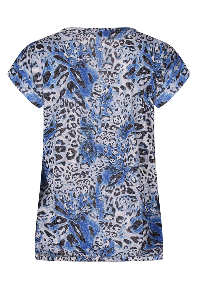 Voeg een speelse twist toe aan je dagelijkse look met dit trendy dames T-shirt. Het shirt is voorzien van een opvallende allover print die direct de aandacht trekt. De V-hals geeft een vrouwelijke touch, terwijl het elastiek in de taille zorgt voor een flatterende pasvorm en subtiele vormgeving.