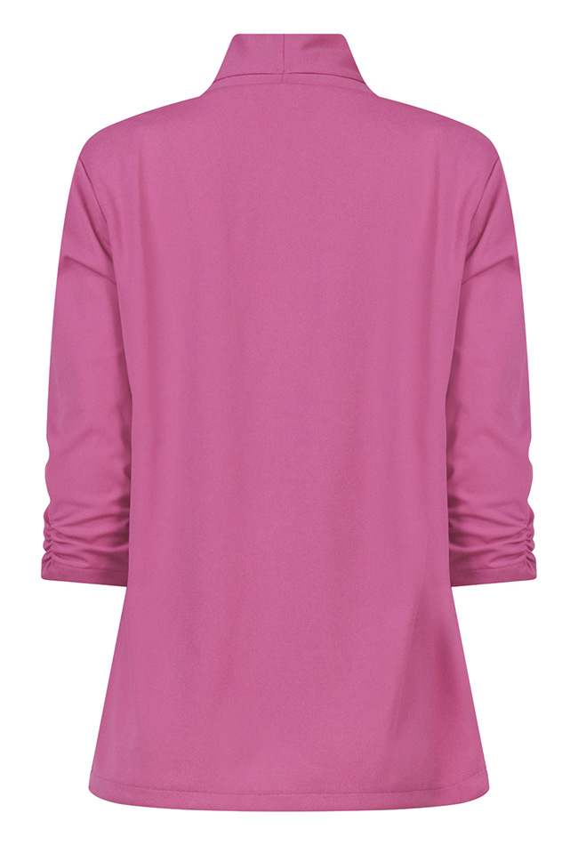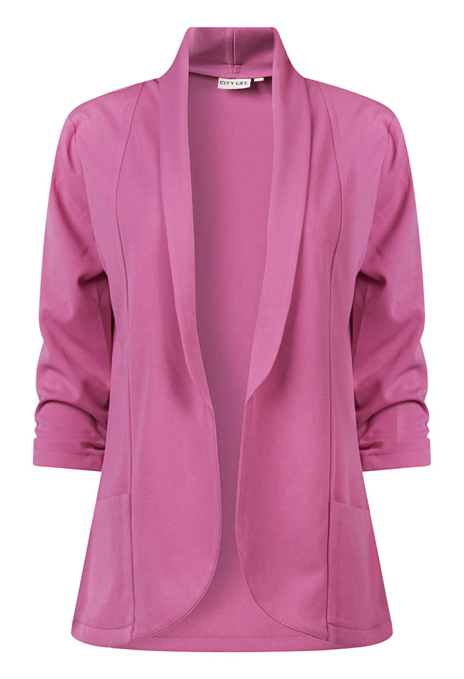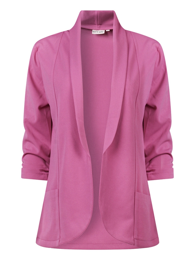 Deze basic open blazer is een veelzijdig en stijlvol item voor elke garderobe. De zachte sjaalkraag geeft een elegante touch, terwijl de subtiele rimpeling in de mouwen zorgt voor een speels detail. Dankzij het open model en het tijdloze design is de blazer multi-inzetbaar: perfect voor zowel casual als nettere outfits.