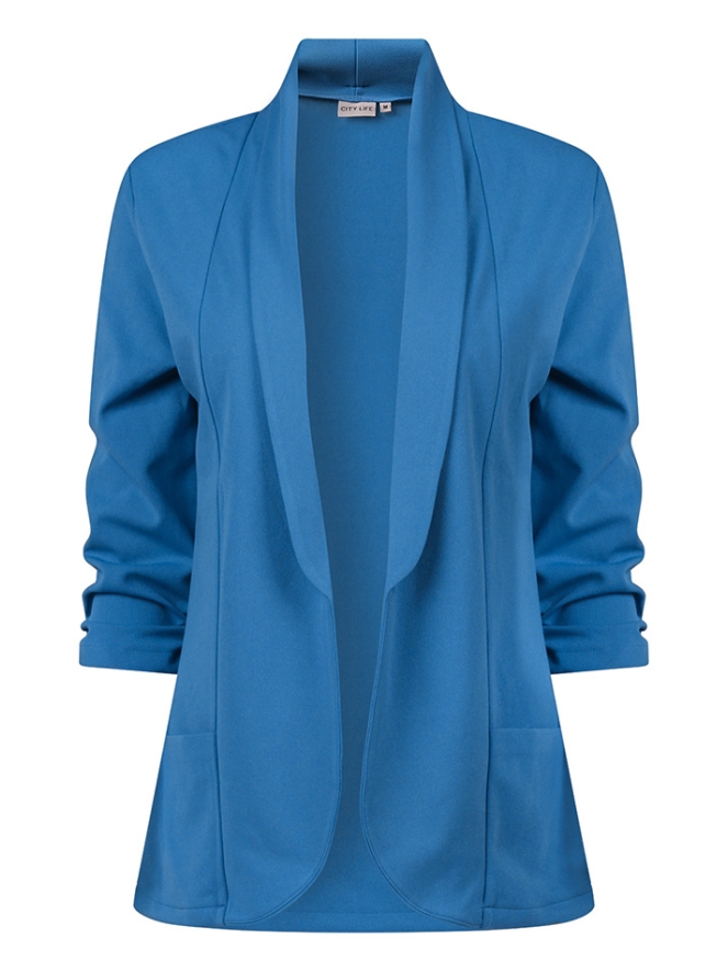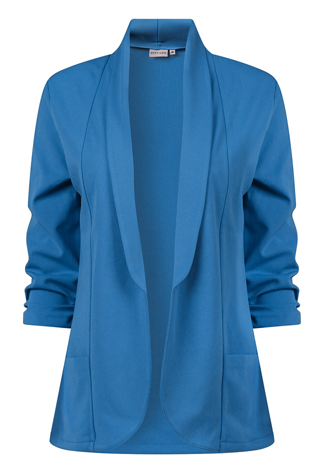 Deze basic open blazer is een veelzijdig en stijlvol item voor elke garderobe. De zachte sjaalkraag geeft een elegante touch, terwijl de subtiele rimpeling in de mouwen zorgt voor een speels detail. Dankzij het open model en het tijdloze design is de blazer multi-inzetbaar: perfect voor zowel casual als nettere outfits.