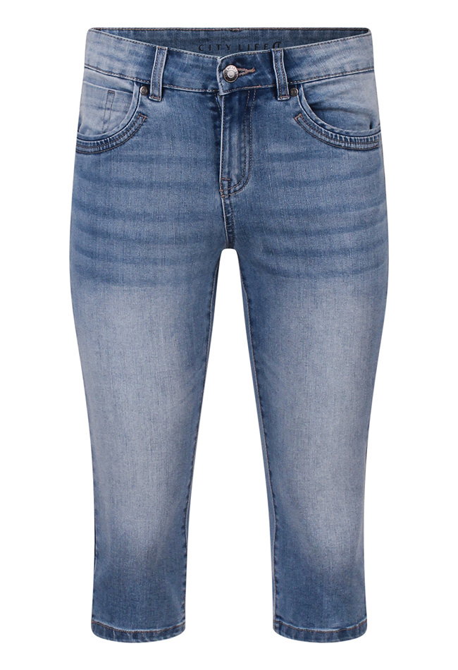 Ontdek de perfecte balans tussen comfort en stijl met deze dames spijkerbroek in een trendy 3/4 lengte. De broek is uitgevoerd in een frisse bleached denim wassing. Dankzij de slim fit pasvorm sluit de jeans mooi aan op het lichaam, terwijl de stretchstof optimale bewegingsvrijheid biedt. Het subtiele splitje aan de onderzijde van de pijpen geeft een speelse en elegante touch, ideaal om je outfit net dat beetje extra te geven.