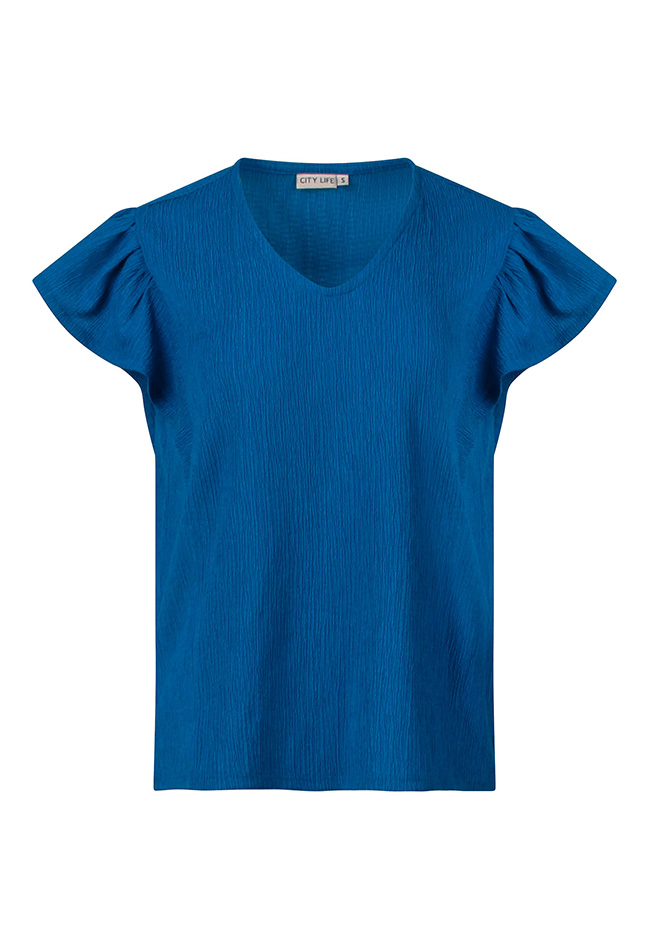 Deze elegante dames top combineert comfort met een vrouwelijke touch. Gemaakt van volledig crincle-stof, voelt de top licht en luchtig aan, perfect voor zowel casual als chique looks.