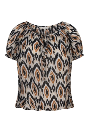 Deze stijlvolle dames top met korte mouwen is een echte eyecatcher voor elke garderobe. De top is voorzien van een elegante knoopsluiting en heeft een soepelvallende pasvorm die mooi langs het lichaam valt en zorgt voor een comfortabele, flatterende look. Gemaakt van lichtgewicht polyester voelt de stof zacht aan en draagt deze heerlijk luchtig.