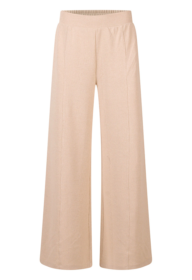 Deze stijlvolle damesbroek combineert comfort met een subtiele sparkle. De broek is uitgevoerd met verfijnd lurex glitterdraad, waardoor hij een elegante glans krijgt die perfect is voor zowel overdag als ?s avonds.