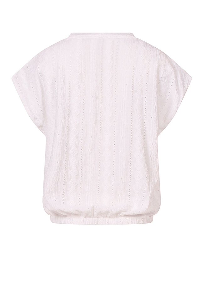 Deze ajour top voor dames is een stijlvolle en luchtige toevoeging aan je garderobe. Het verfijnde ajourpatroon zorgt voor een speelse, vrouwelijke uitstraling en maakt de top perfect voor zowel warme dagen als gelaagde outfits. Dankzij het elastische koord in de taille creëer je moeiteloos een mooie, getailleerde pasvorm die je silhouet flatteert. De top zit comfortabel en biedt tegelijkertijd een trendy look die zowel casual als chic te combineren is.