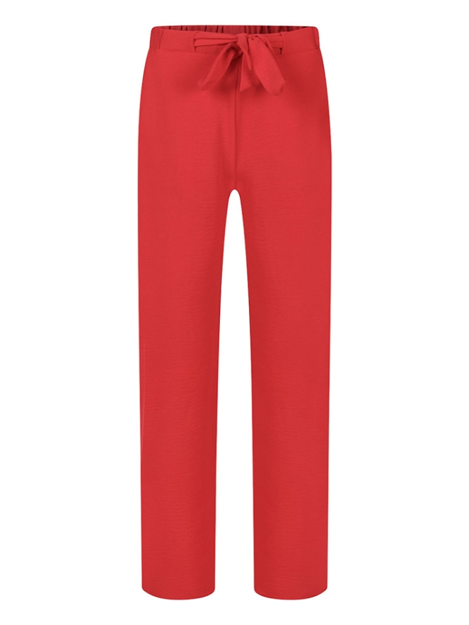 Comfortabele pantalon van crincle stof met fijne steekzakken en een vaste strikceintuur. Deze broek heeft een wijde pijp.