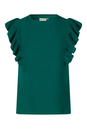 Dames shirt met glanzende Lurex-details, een flatterende V-hals en aangeknipte korte mouwen voor een moderne en feestelijke uitstraling.