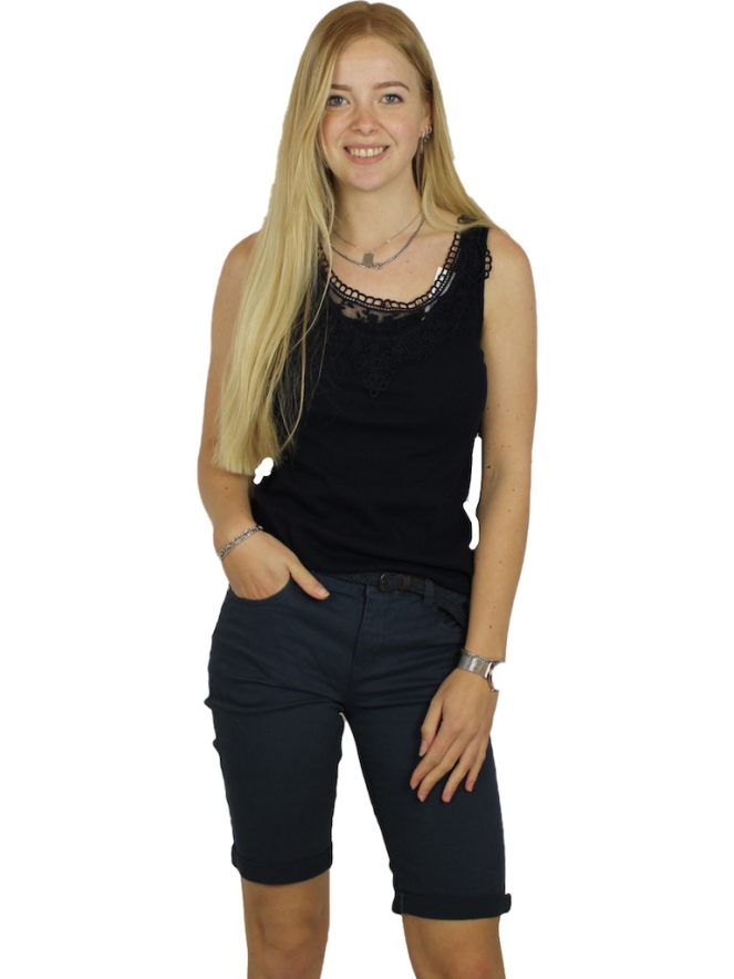 Bermuda shorts van City Life. De shorts hebben wat langere pijpen en een gevlochten riem in de taille. Valt op maat. Materiaal: 98% katoen, 2% elasthan. Wassen op 30 graden, niet bleken, niet in de droger, kan gestreken worden.