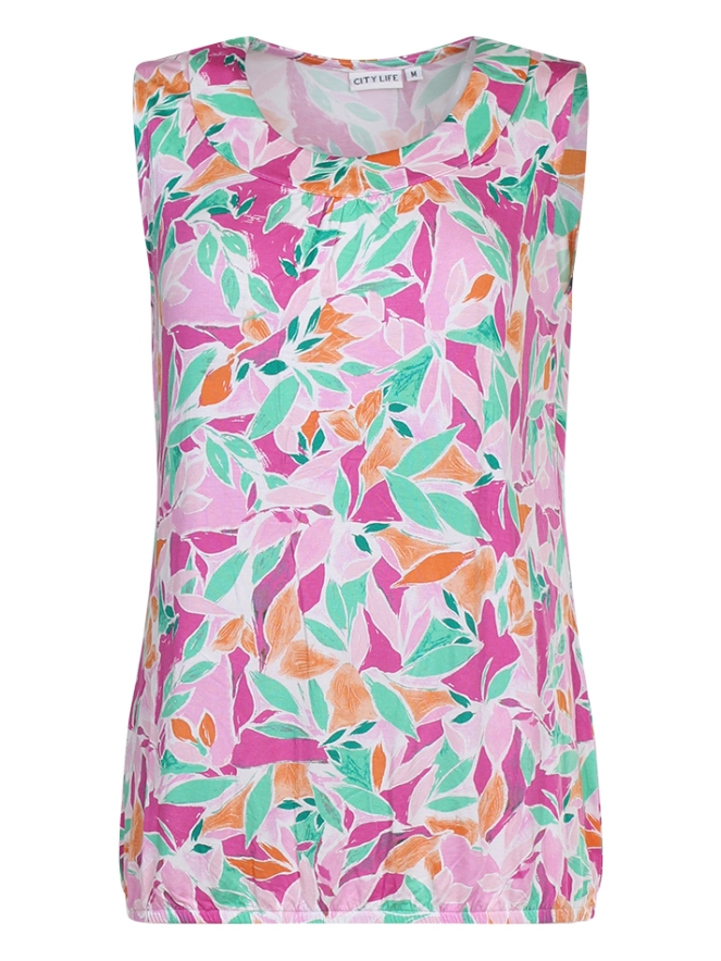 Singlet met bloemenprint en elastiek aan de onderkant.