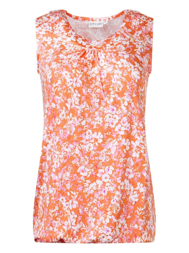 Singlet van Citylife met bloemenprint en elastiek aan de onderkant.