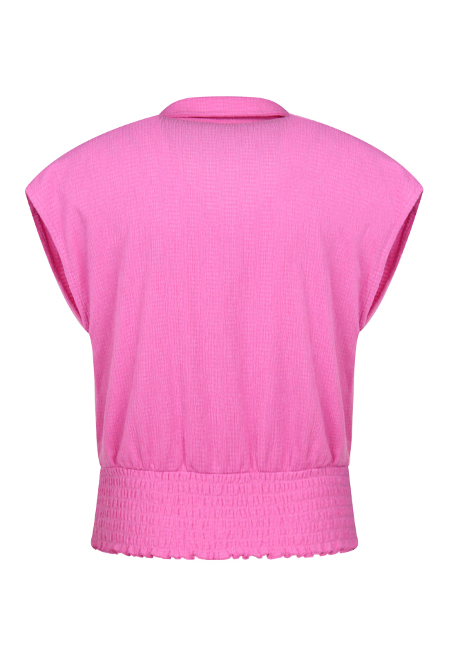 Crinkle top met rever omslag en een elastische gesmokte tailleband.