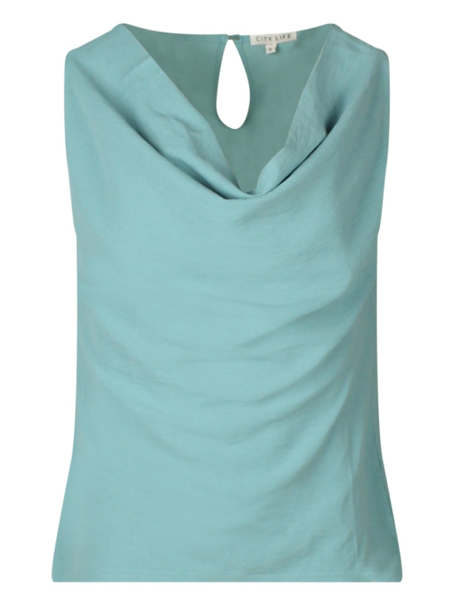 Deze singlet met gedrapeerde hals heeft een druppeluitsparing ter hoogte van de hals aan de achterkant.