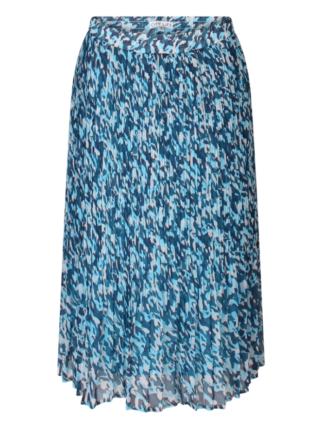 Deze middellange chiffon plisserok heeft elastiek in de taille. Met een binnenrok.