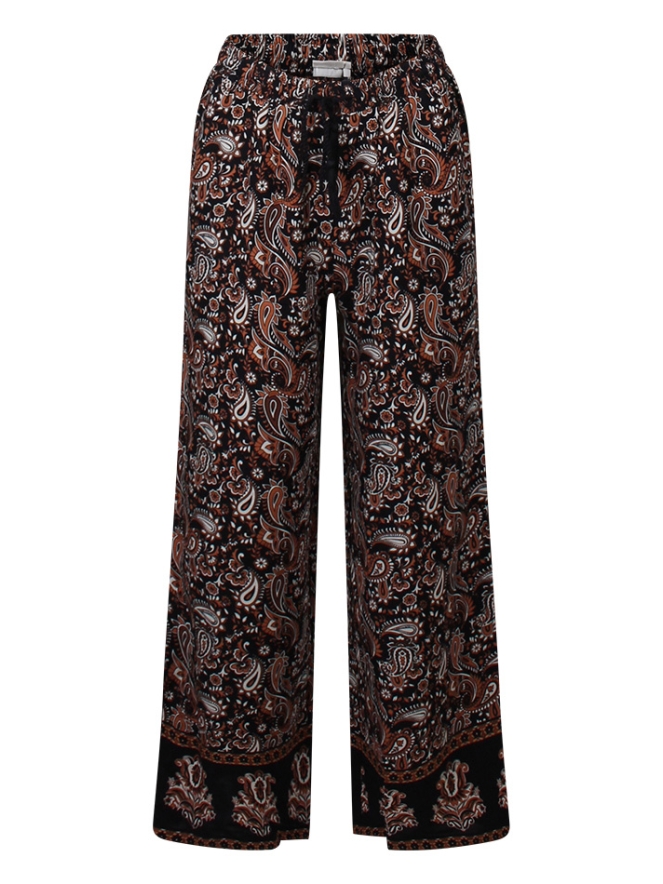 Deze broek met rechte broekspijpen heeft een paisley print met een koord uit de tailleband met kwastjes.