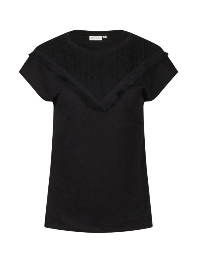 We are in love with this T-shirt! Dit T-shirt met een vleugje Boho style is onmisbaar in jouw garderobe! Het T-shirt heeft een stylisch ontwerp en kun je met alles combineren. Door de franje en het haakwerk op het T-shirt is het shirt alles behalve boring! Stijl het T-shirt op een casual jeans, short of rok.