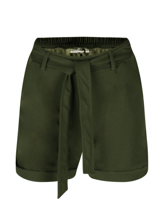 Deze dames short is gemaakt van een soepel vallende stof en draagt heerlijk comfortabel. De taille is voorzien van een strikceintuur en elastiek aan de achterkant voor een fijne pasvorm. Met twee praktische steekzakken en een speelse omslag aan de broekspijpen is deze short zowel stijlvol als functioneel.