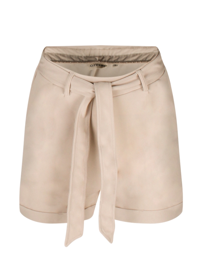 Deze dames short is gemaakt van een soepel vallende stof en draagt heerlijk comfortabel. De taille is voorzien van een strikceintuur en elastiek aan de achterkant voor een fijne pasvorm. Met twee praktische steekzakken en een speelse omslag aan de broekspijpen is deze short zowel stijlvol als functioneel.